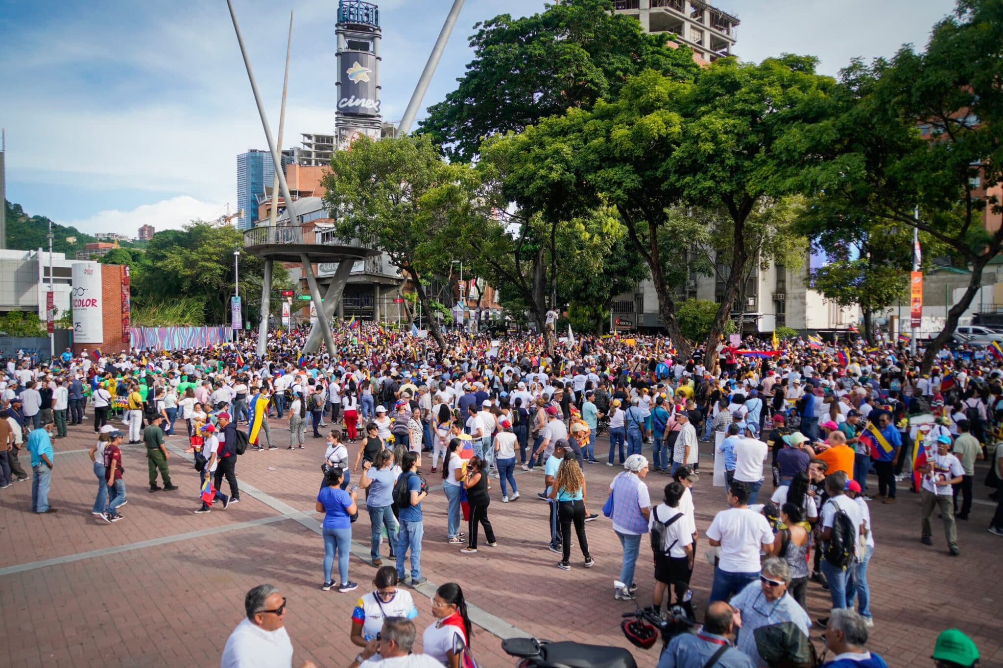 Simpatizantes de la oposición venezolana acudieron este jueves 25 de julio a la plaza Alfredo Sadel de Las Mercedes, en Caracas, para el cierre de campaña del candidato Edmundo González Urrutia.